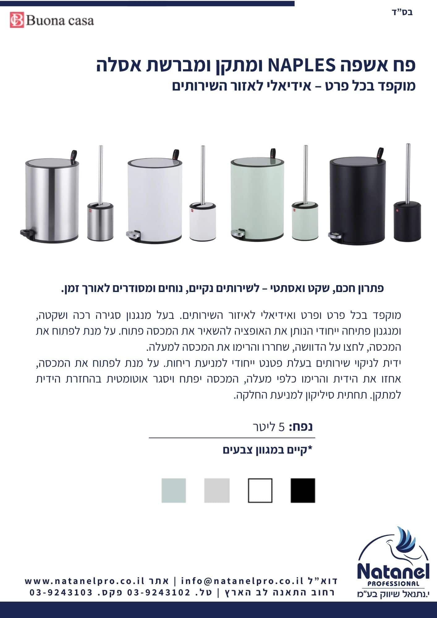 פח אשפה NAPLES מתקן ומברשת אסלה במגוון צבעים