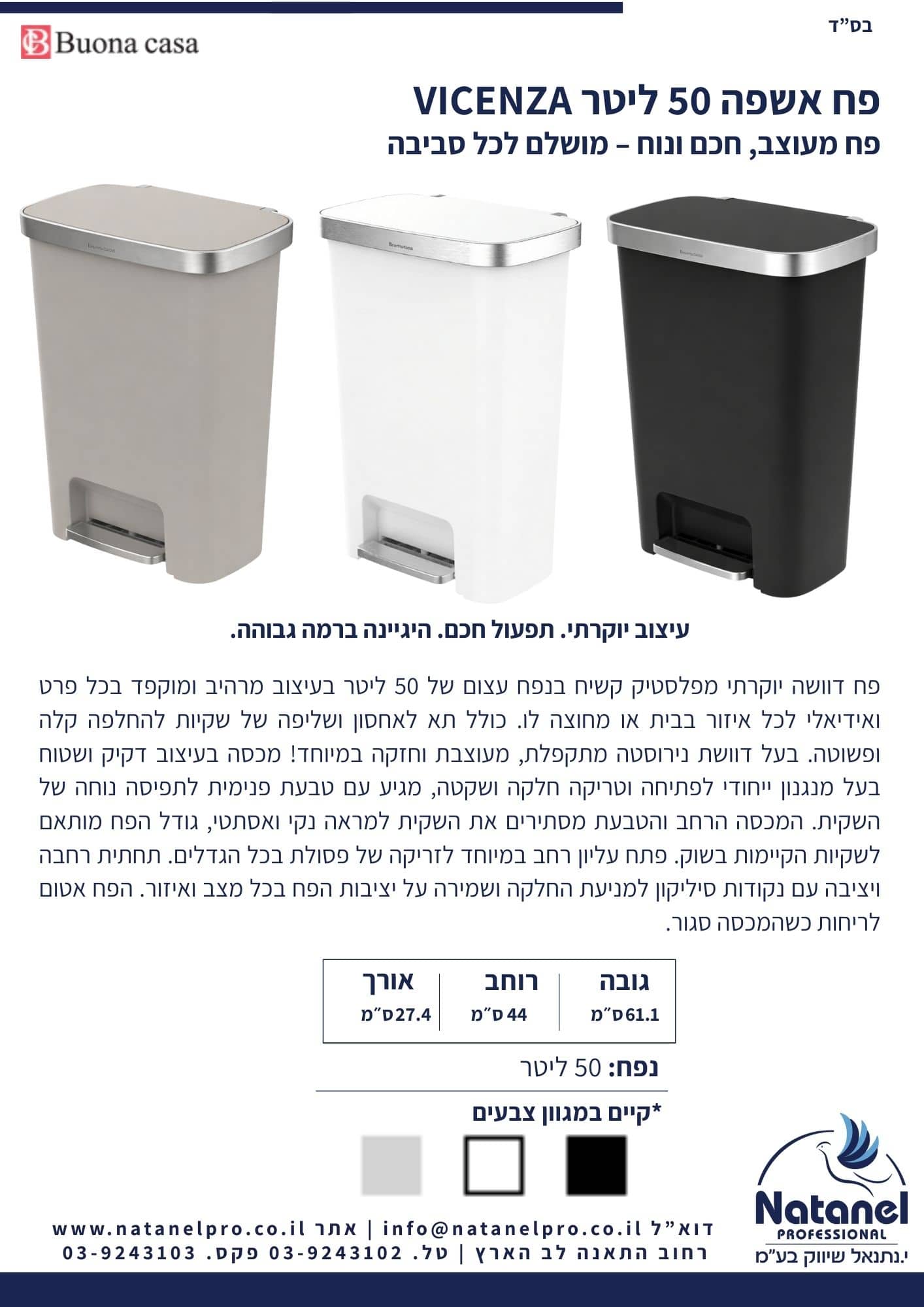 - פח טאץ בין 50 ליטר מבריק -ברבנטיה